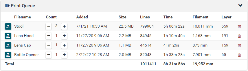 To calculate exact printing times, you should run the Heatup and Cooldown Wizard. This feature measures heating and cooling speed needed for accurate printing time prediction.
